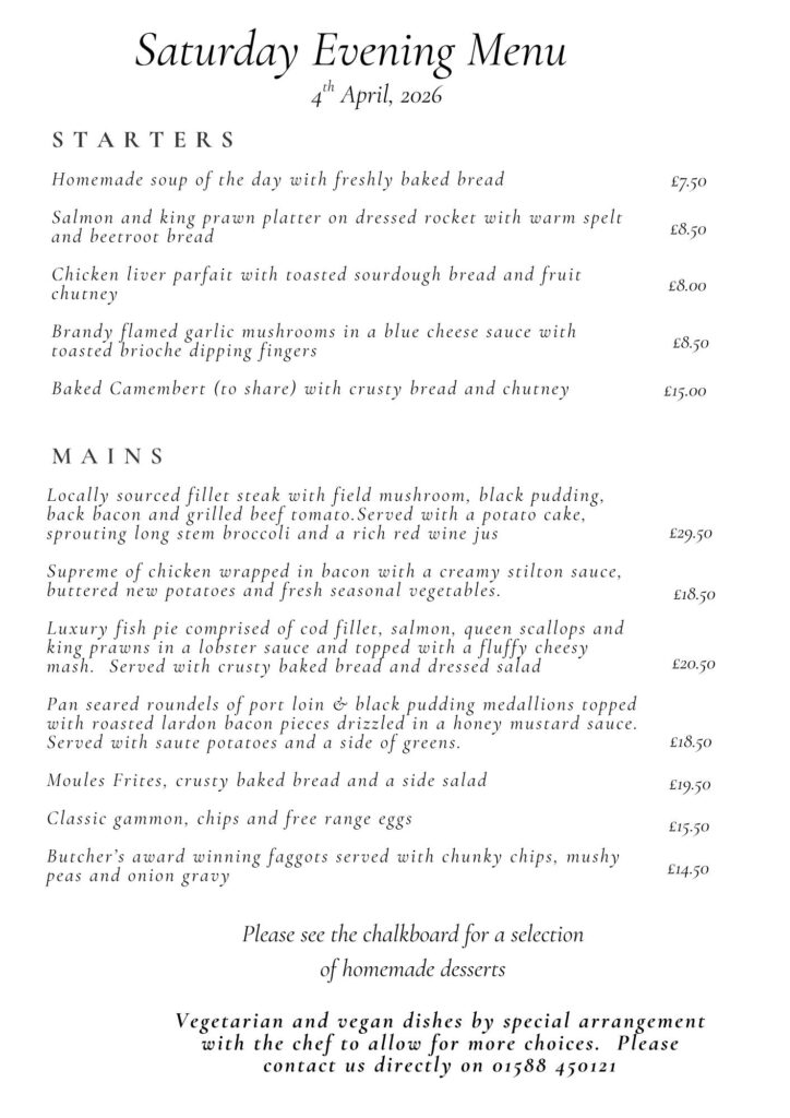 Saturday Evening Menu